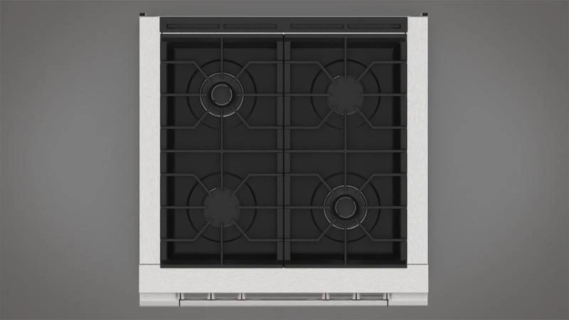 The 30″ All Gas range features a combination of two Crescendo burners, and two high powered sealed burners offering great performance and value. The oven features a generous 4.4 cubic feet capacity with dual convection and a bake burner, providing perfectly consistent oven temperatures.