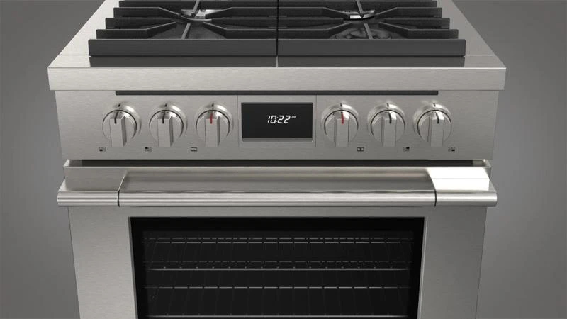 The 30″ Dual Fuel range features a combination of two Crescendo burners, and two high powered sealed burners offering great performance and value. The oven features a generous 4.4 cubic feet capacity with dual convection and self-cleaning functions.