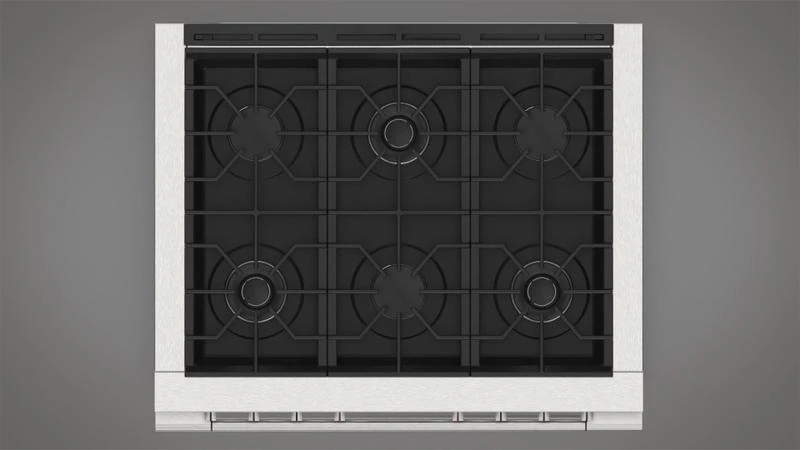 The 36″ All Gas range features a combination of three Crescendo burners, and three high powered sealed burners offering great performance and value. The oven features a generous 5.7 cubic feet capacity with dual convection and a bake burner, providing perfectly consistent oven temperatures.
