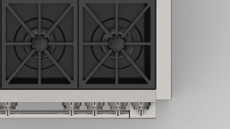 The integrated dual valve system, on all gas burners, gives access to flame power that can go from searing a steak to perfection to tempering the most delicate chocolate, all while using the same knob control.