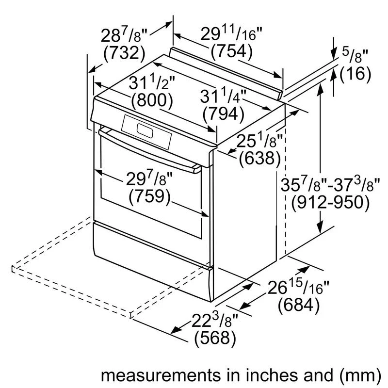 | Required Cutout Size (HxWxD) (in) | 30” width slide-in |