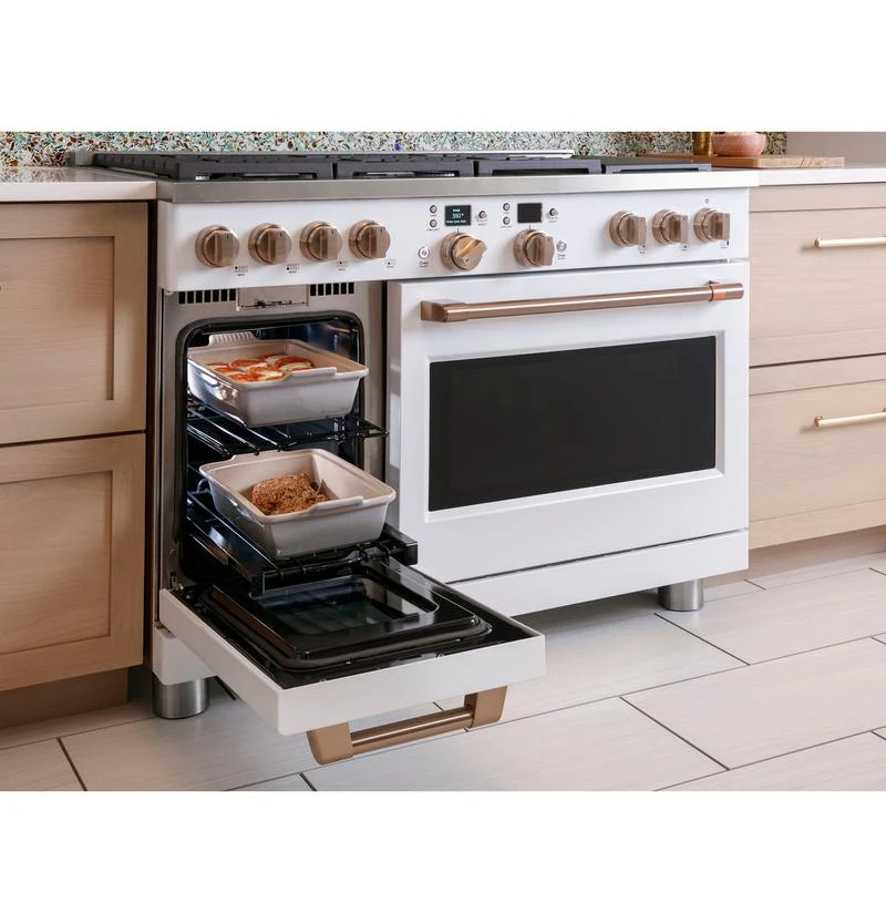 Caterer Oven A large capacity oven fits a full-size catering pan and has three racks, large 8-pass bake and broil elements for even heat coverage and Precision Oven modes to help guarantee results for meals of any size