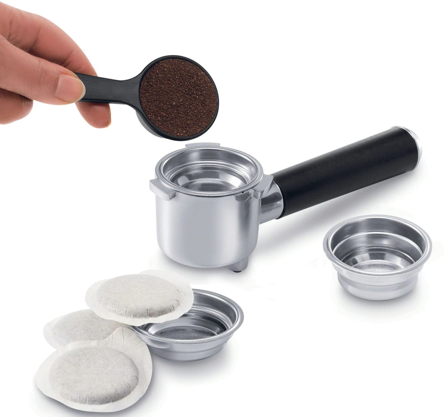 Each machine includes a dual purpose scoop and tamper to assist with filling the portafilter. Crafting milk drinks utilizes the manual cappuccino system to texture perfect milk foam for favorites like lattes and cappuccinos. Steaming is easy, simple press the steam button twice and ensure that the steam knob is in the steaming position. The machine can also dispense hot water for drinks like tea and cocoa by repositioning the steam knob to the hot water position.