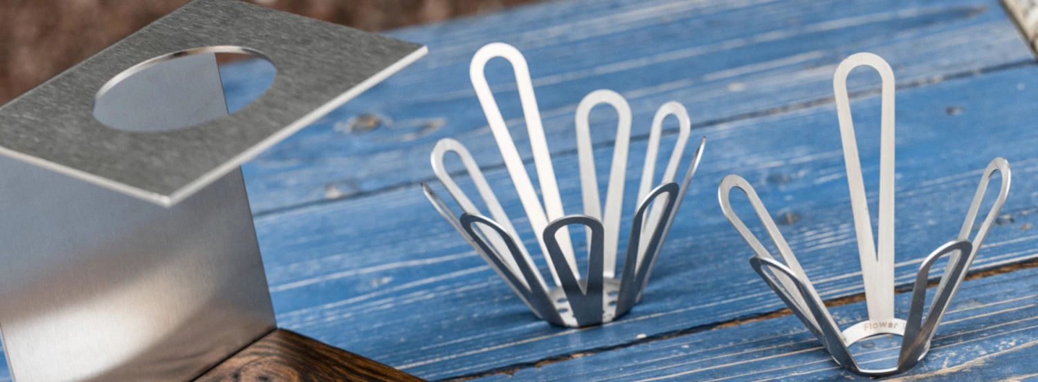 Unique and Italian-made, E&B Lab’s Flower Wave filter was designed to house Kalita wave paper filters. The longer petal on the filter is a deliberate feature that specifically grips the paper filter while the shorter petals aid in supporting the paper filter throughout the brewing process. Unlike many other filter holders, the flower design helps prevent changes in the coffee’s temperature while brewing as it has less surface area to absorb heat. The flat bottom of the Kalita help to guarantee an even bed depth while brewing.