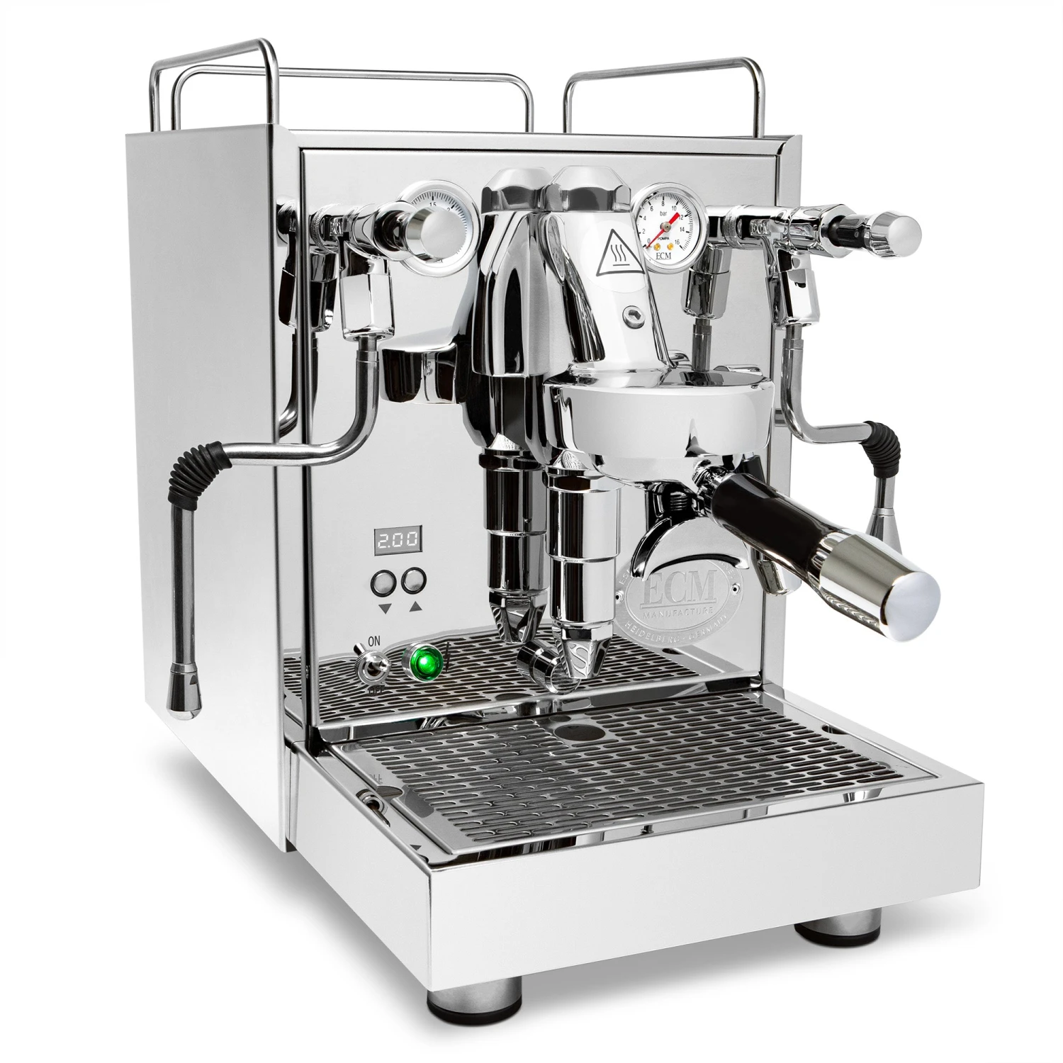 The ECM Mechanika MAX is a PID controlled smart heat exchanger espresso machine with a rotary pump. It introduces a number of firsts for ECM including the ability to program the PID to regulate the boiler based on the temperature at the brew group. It’s also the first with programmable weekday and weekend on/off timers so you can have the MAX ready to brew whenever you need it. Equipped with a plumbable rotary pump and <11″ wide the Mechanika MAX will have no trouble fitting into any home espresso bar.