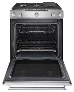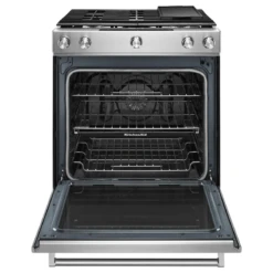 KitchenAid 30-Inch 5 Burner Gas Convection Slide-In Range With Baking Drawer – Stainless Steel