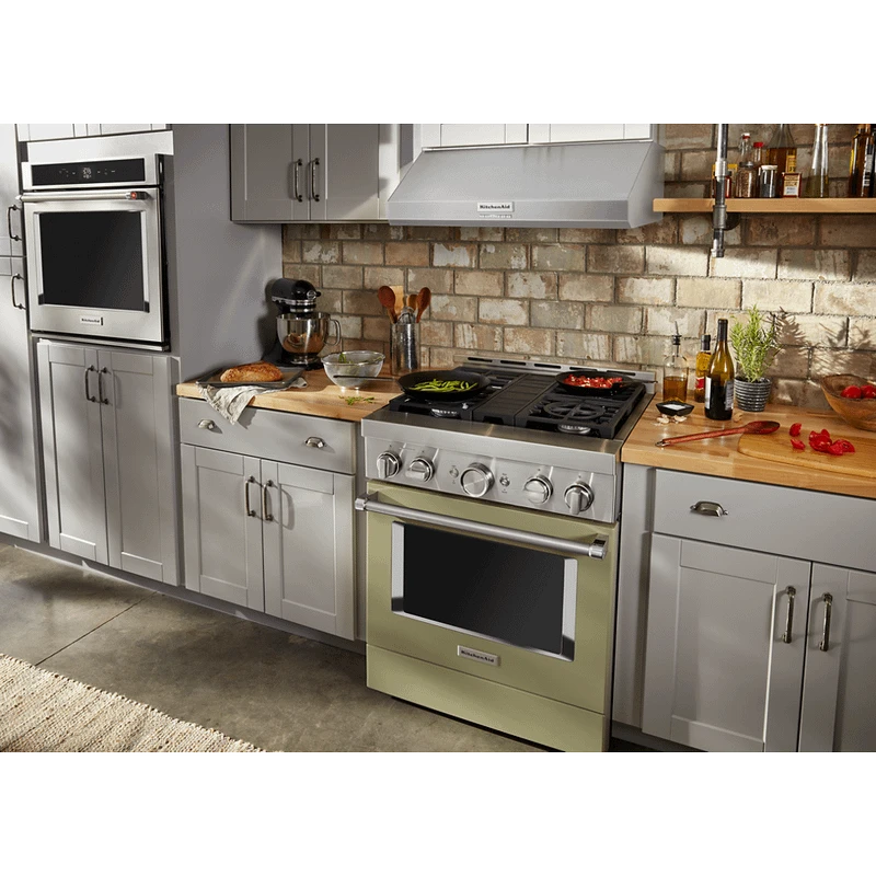 lets you control the oven with your Google Assistant or an Alexa-enabled device to stay hands on or hands off. 1 Use the KitchenAid™ App to preheat, proof, bake and roast, save custom cooking instructions for favorite recipes and more.