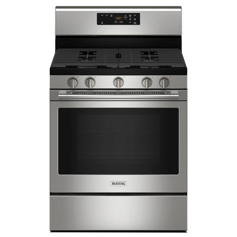 The dishwasher-safe cast-iron grates and sturdy door hinges on this Maytag® gas range are built for dependability, while the fingerprint resistant stainless finish helps make cleaning easier.