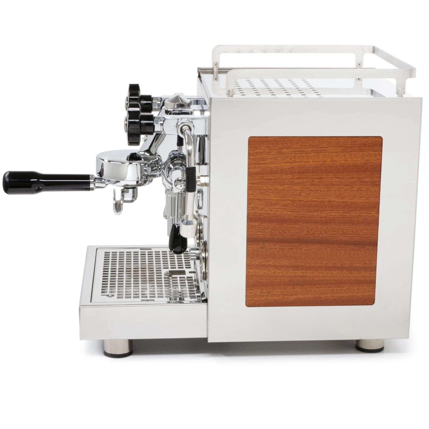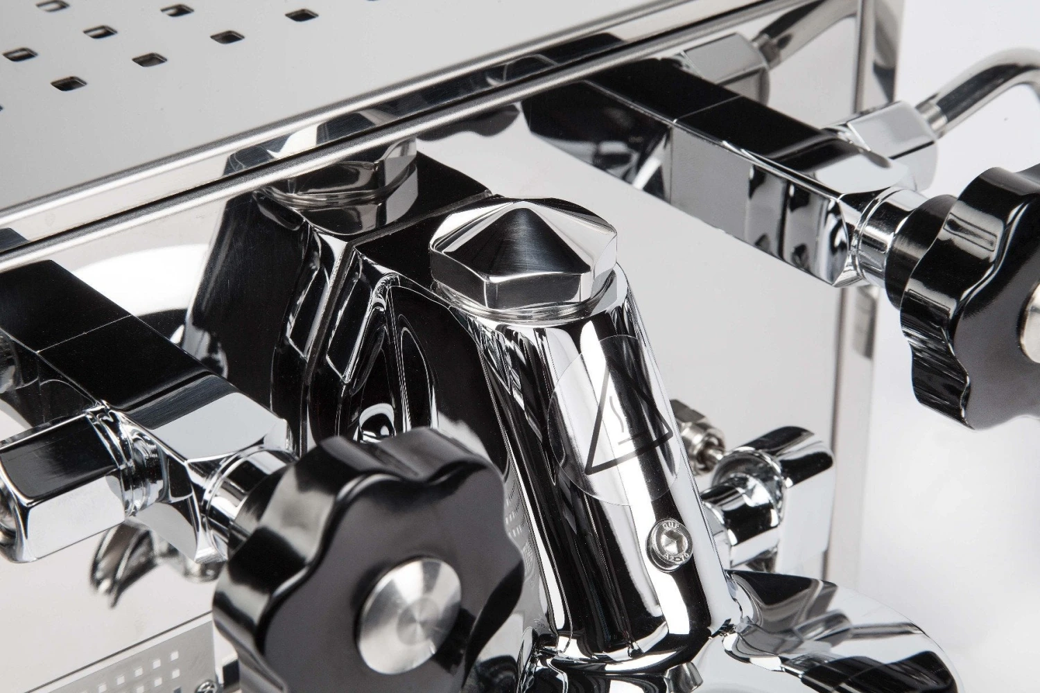 From the outside, the housing is constructed of polished stainless steel, and the side cutouts reveal a modern matte black panel. These panels in combination with the distinctively shaped steam and hot water arms make for a stand out addition to any counter top.