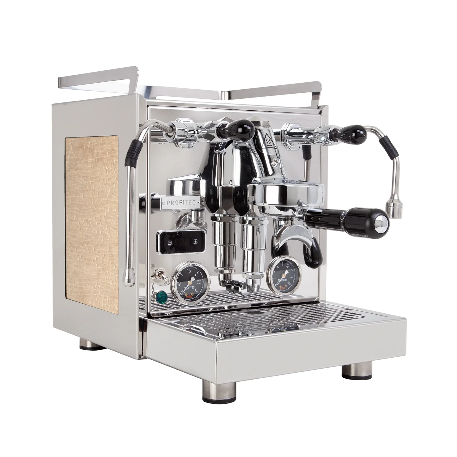 Each of the Pro 600’s boilers are temperature regulated by the front facing PID controller, which doubles as a shot timer when a shot is being pulled. For added functionality, the steam boiler can be switched off for use as a single boiler machine.