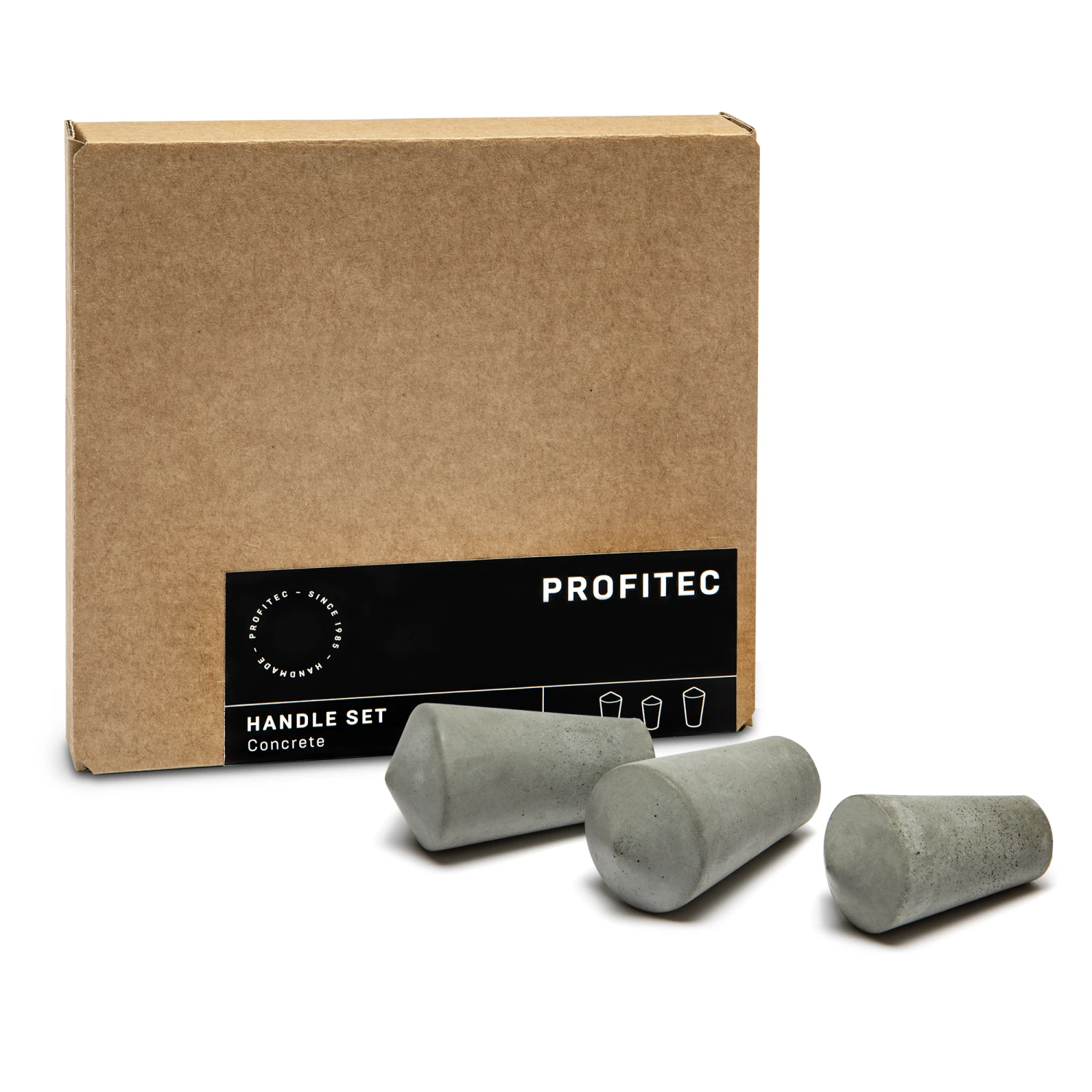 Made from rugged Concrete this set of accouterments replaces the plastic knobs on the steam, hot water, and brew levers of the Profitec Pro 600 with Quick Steam and the Profitec Drive. Customization is a snap and each piece can be installed by hand simply by twisting and removing the existing components and twist the new ones back on in their place.