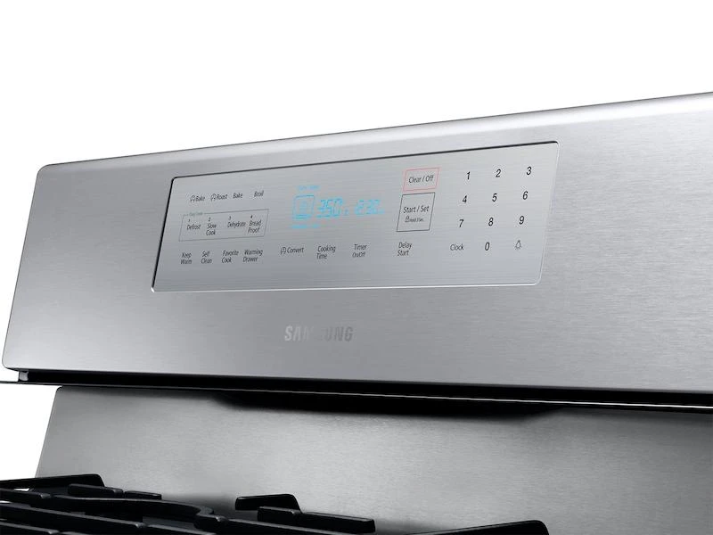 Enjoy the flexibility to cook with different-sized pans simultaneously. Whether you’re boiling water, melting chocolate or simmering sauce, there’s a burner for your needs: a high-power burner with 18,000 BTU, plus simmer, oval and regular burners. The dual power burner features two independent heating elements with power ranging from 18,000 BTU to 1,000 BTU, allowing you to go from a rapid boil to a true simmer. Use the oval burner for oversized pots or pans, or “bridge” cooking. Watch a demo of the NX58F5700WS