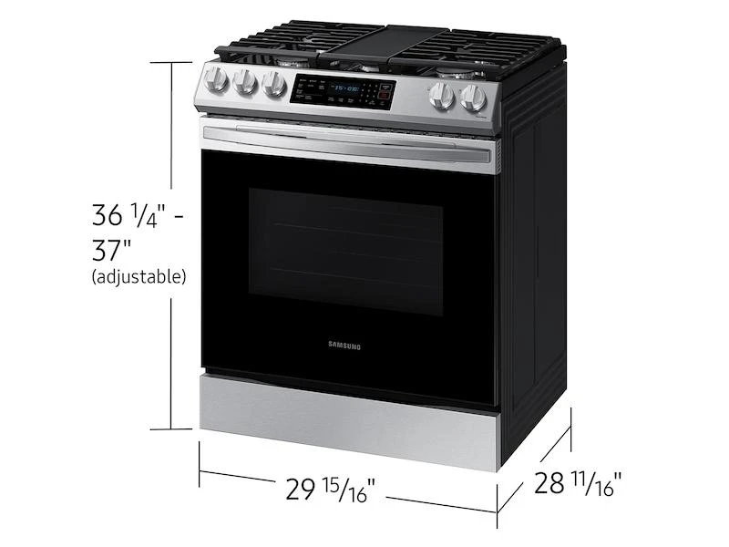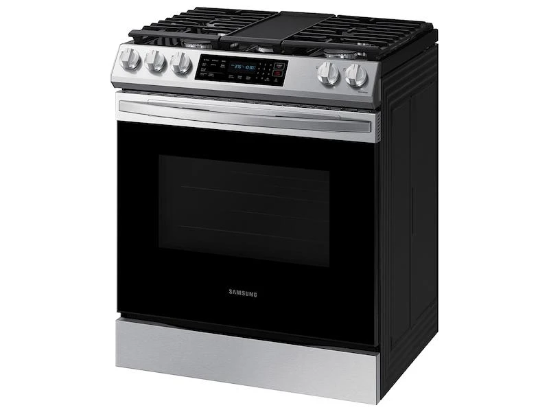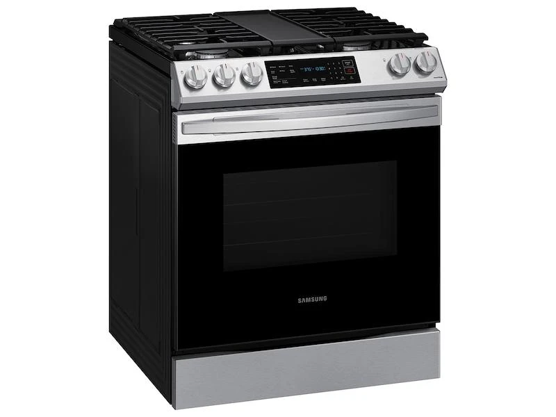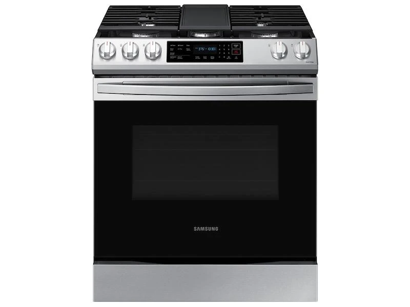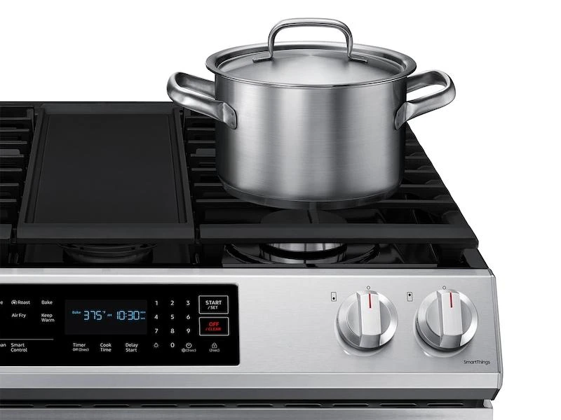 - The Samsung Front Control Slide-in Electric Range includes Air Fry and Convection.