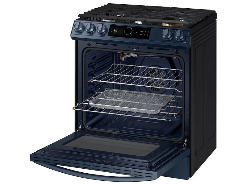 - The Smart Front Control Slide-in Gas Range features a Smart Dial, Air Fry and Wi-Fi. Bespoke kitchen appliances are now available in three complementary colors to the Bespoke Refrigerators. Create your kitchen space in your style in Navy Steel, Tuscan Steel or White Glass.