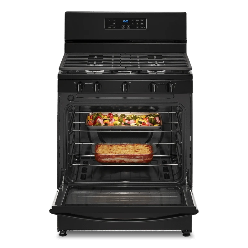 Easily cook large meals with a 5.1 Cu. Ft. Capacity oven that includes two racks and a separate Broiler Drawer.