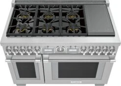 Convection fan circulates gas heat within the large capacity oven to eliminate “cold spots” and ensure more consistent, more delicious results – even when using multiple racks at once.