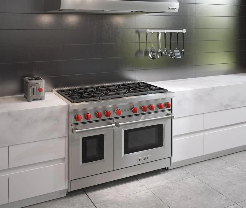 Find your kitchen style with a choice of iconic red, black, or brushed stainless control knobs